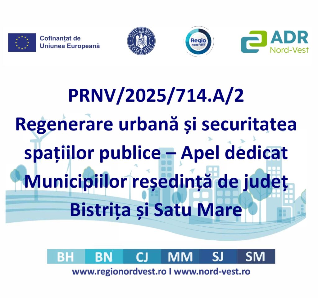 Ghidul Solicitantului 714.A (apel 2) – Regenerare urbană și securitatea spațiilor publice – Apel dedicat Municipiilor reședință de județ Bistrița și Satu Mareoctombrie 14, 2025