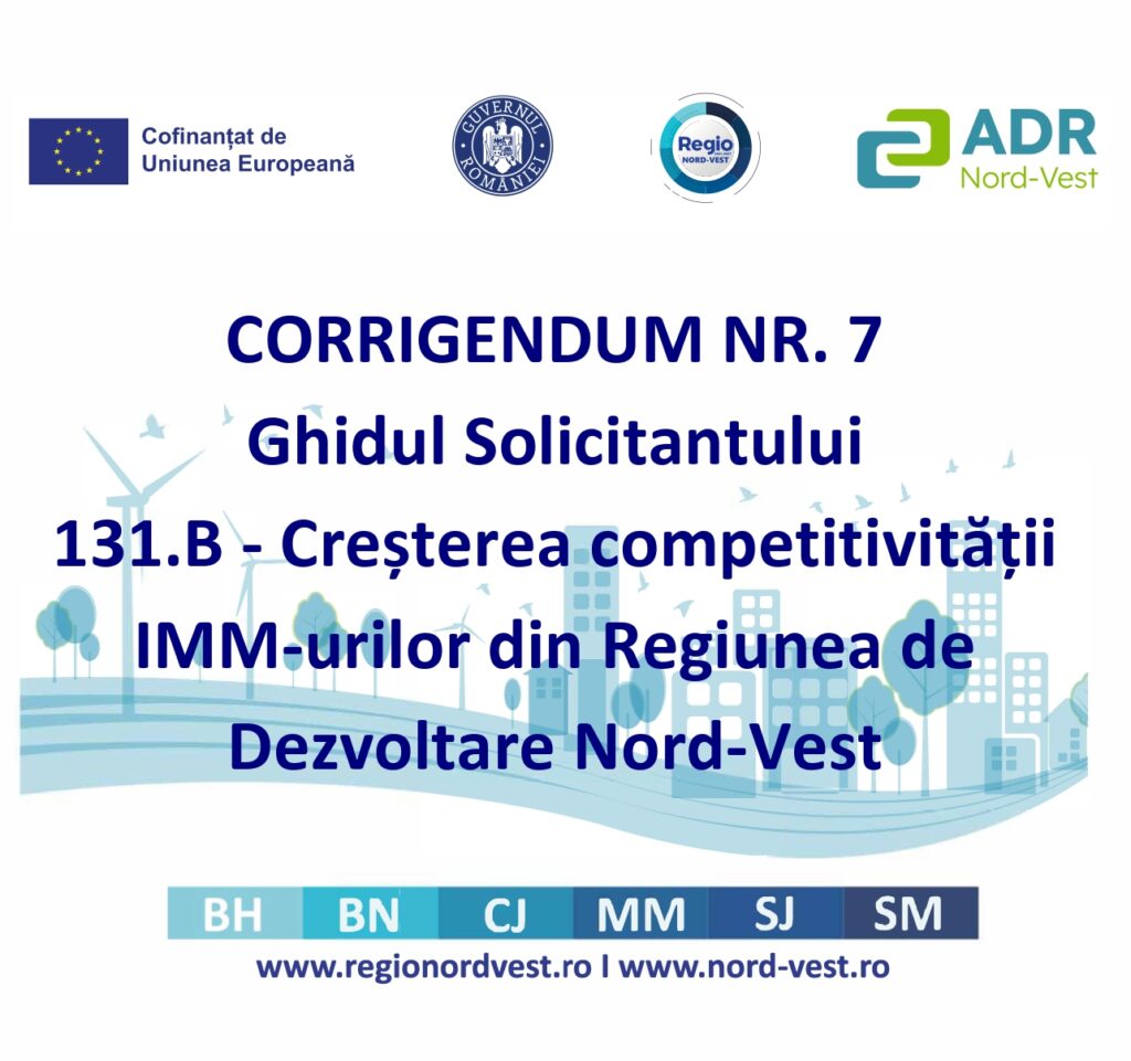 Corrigendum nr. 7 pentru Ghidul Solicitantului 131.B – Creșterea competitivității IMM-urilor din Regiunea de Dezvoltare Nord-Vestoctombrie 28, 2025