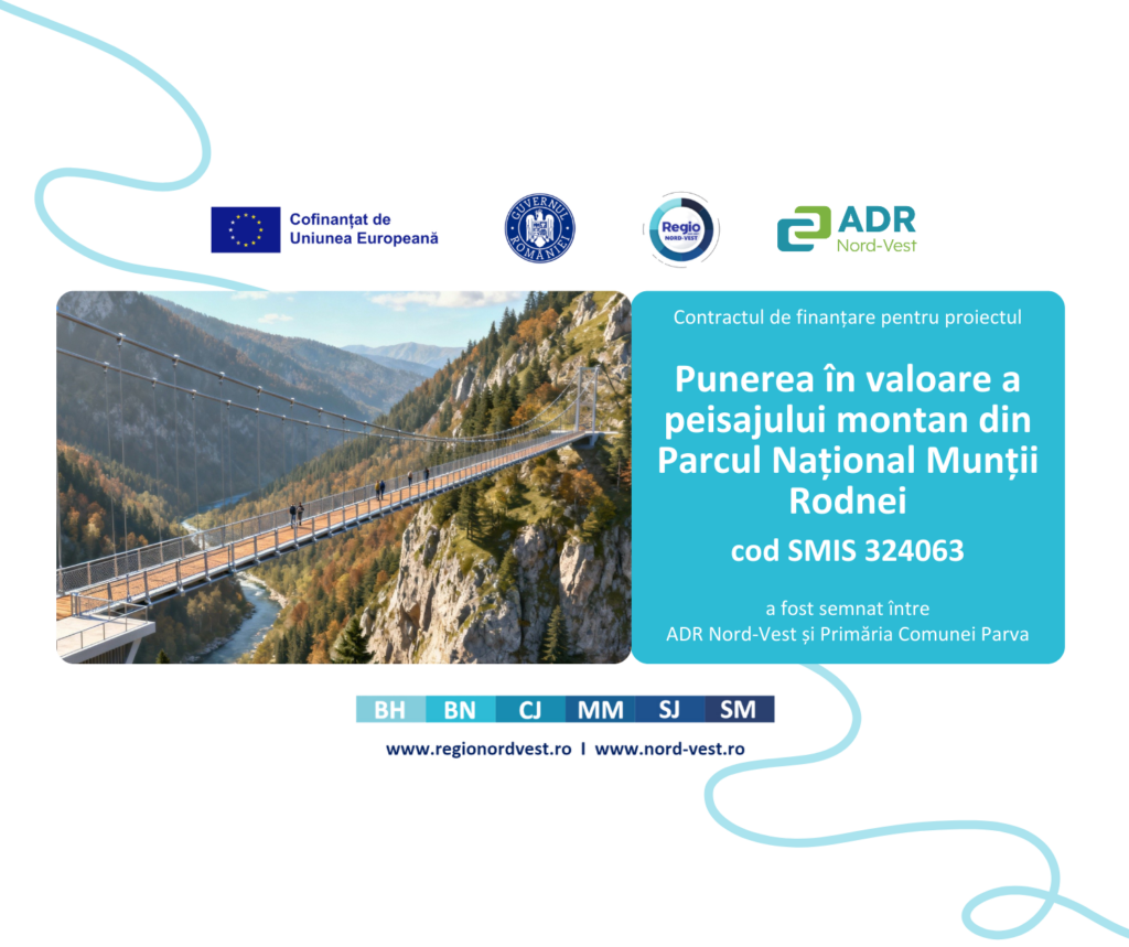 Comuna Parva va construi o punte suspendată de 620 de metri peste Valea Rebrei, printr-o investiție de aproape 6 milioane de euro finanțată prin Programul Regional Nord-Vest 2021–2027martie 13, 2026