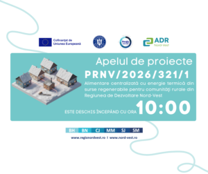 Astăzi, 4 februarie 2026, la ora 10:00 se deschide apelul de proiecte PRNV/2026/321/1 Sprijinirea investițiilor în sisteme de alimentare centralizată cu energie termică din surse regenerabile pentru comunități rurale din Regiunea de Dezvoltare Nord-Vest