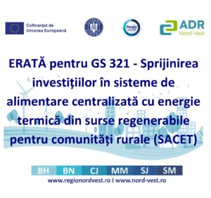 ERRATA pentru Ghidului Solicitantului 321 – Sprijinirea investițiilor în sisteme de alimentare centralizată cu energie termică din surse regenerabile pentru comunități rurale din Regiunea de Dezvoltare Nord-Vest și anexelor aferente apelului de proiecte PRNV/2026/321/1 – from the Northwest Regional Program 2021-2027.